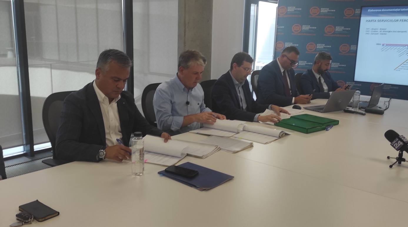 Astăzi, 20 august 2025, a fost semnat contractul de achiziție publică „Servicii de întocmire documentației tehnico-economice – faza Studiu de fezabilitate pentru obiectivul de investiții Tren Metropolitan Brașov“, un pas esențial pentru realizarea acestui proiect. Tot astăzi, primarul municipiului și președintele Consiliului Județean au semnat „Acordul de parteneriat încheiat pentru pregătirea și implementarea proiectului Tren Metropolitan Brașov“.