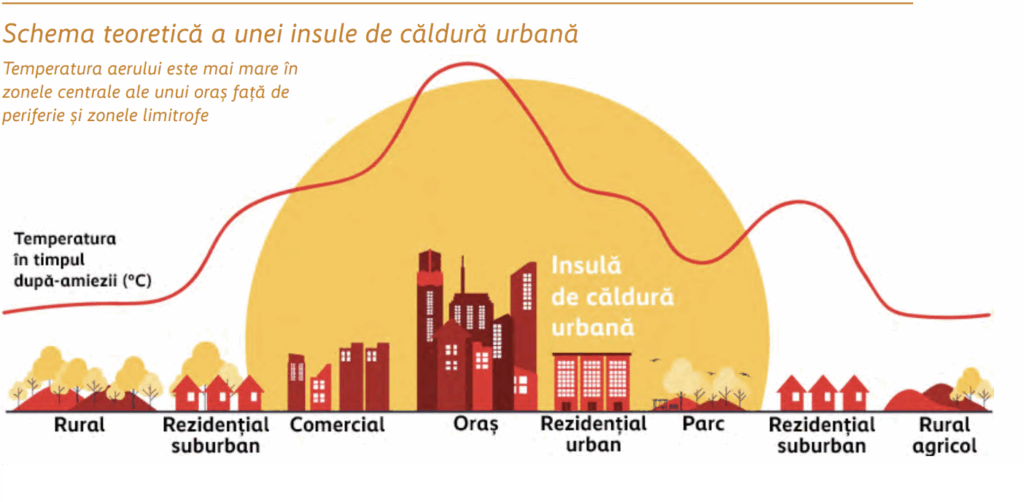 Orașele României devin tot mai calde, mediul urban punând astfel o presiune tot mai mare asupra confortului și inducând riscuri termice din ce în ce mai accentuate. Modificarea temperaturii ambientale la nivel regional va avea un ritm accelerat în orașe în următoarele decenii. Schimbarea radicală a modului de planificare urbană în vederea adaptării și atenuării impactului schimbărilor climatice este o necesitate extrem de actuală la nivelul administrațiilor locale din România.