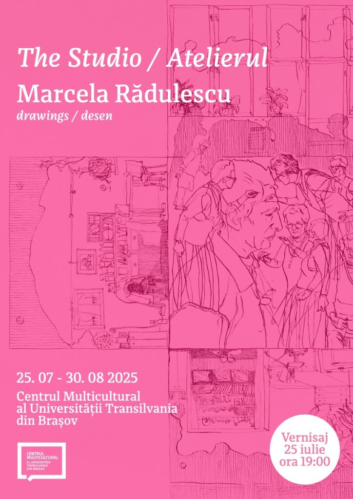 Între 25 iulie și 31 august 2025, Centrul Multicultural al Universității Transilvania prezintă expoziția de desen „Atelierul”, semnată de Marcela Rădulescu și curatoriată de Adrian Lăcătuș. Vernisajul expoziției are loc vineri, 25 iulie 2025, ora 19:00.
