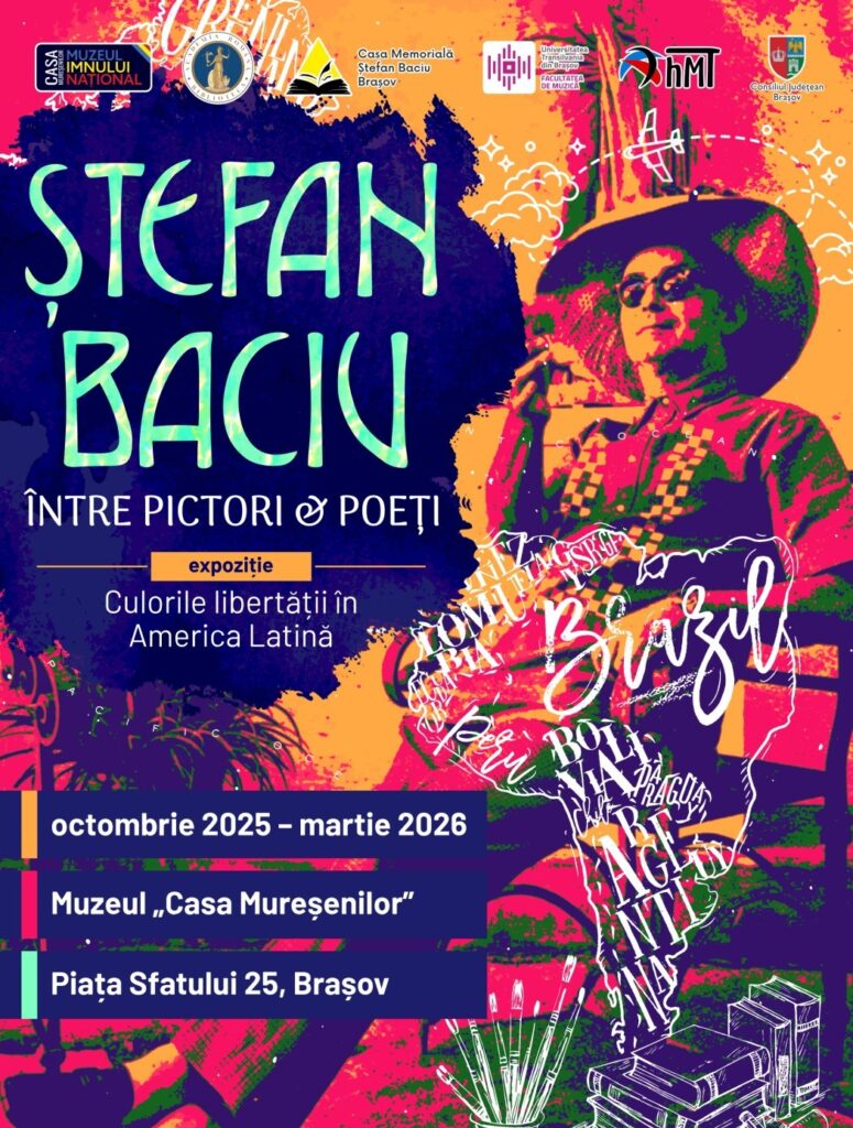Muzeul „Casa Mureșenilor” Brașov, în colaborare cu Biblioteca Academiei Române, organizează joi, 30 octombrie 2025, ora 17:00, vernisajul expoziției „Ștefan Baciu între poeți & pictori. Culorile libertății în America Latină”. Evenimentul va avea loc la sediul muzeului, din Piața Sfatului nr. 25.