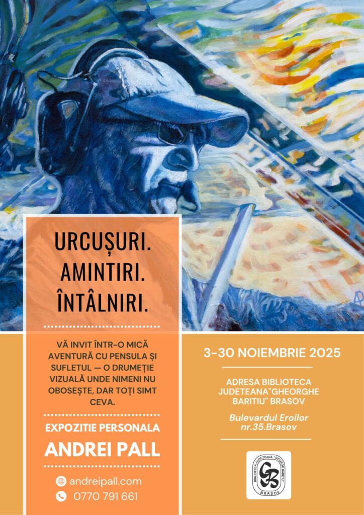 Biblioteca Județeană „George Barițiu” Brașov găzduiește, în luna noiembrie 2025, expoziția personală a artistului Andrei Pal, intitulată „Urcușuri, Amintiri, Întâlniri”. Expoziția este deschisă publicului în Galeria de pe scară și poate fi vizitată până în data de 30 noiembrie 2025.