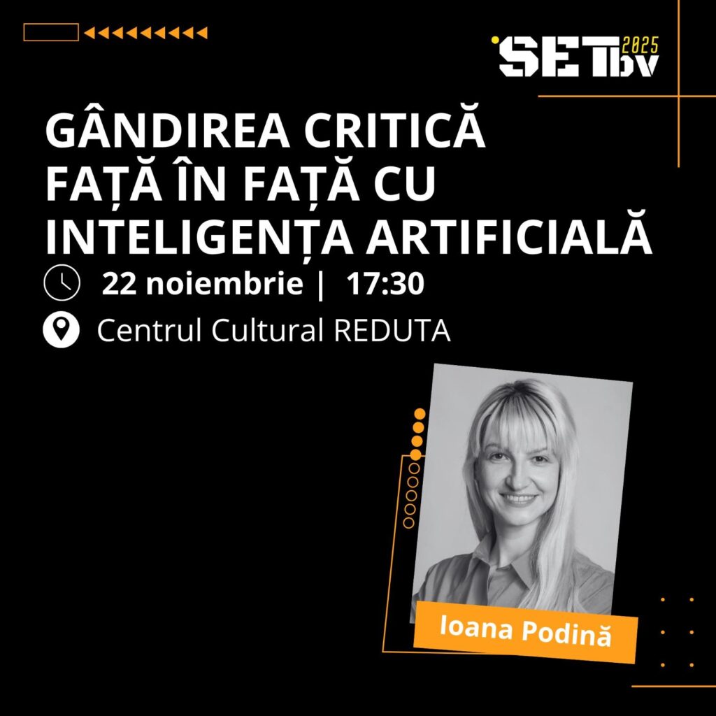 - 17:30 | Dialogurile SETbv | Gândirea Critică față în față cu Inteligența Artificială | Ioana Podină