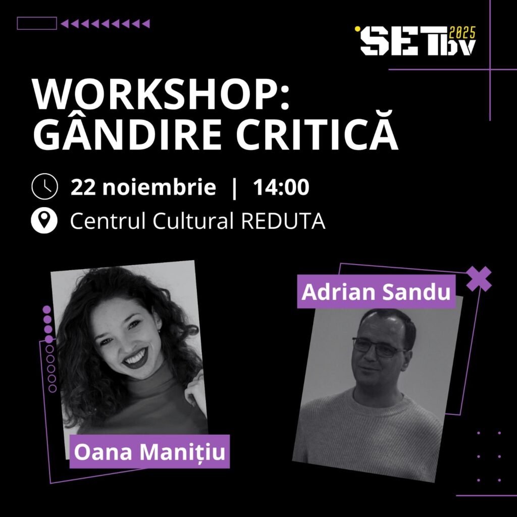 - 14:00 | Workshop | Gândire critică | Oana Maniţiu şi Adrian Sandu