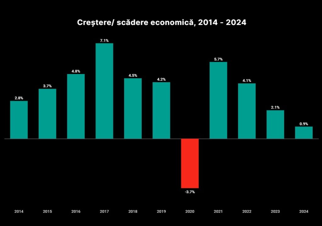În ciuda măsurilor fiscale adoptate în ultima parte a anului 2023, deficitul bugetar a crescut alarmant în anul 2024, ajungând la –8,65% din Produsul Intern Brut. În timp ce cheltuielile statului erau cu 19% mai mari decât în anul anterior, România a reușit să încaseze cu numai 10,4% mai mulți bani. Cheltuielile de personal (+24%), cu bunuri și servicii (+21,4%), cu dobânzile (+21,3%) și cu asistența socială (+17,2%) au crescut considerabil față de nivelul înregistrat în 2023.