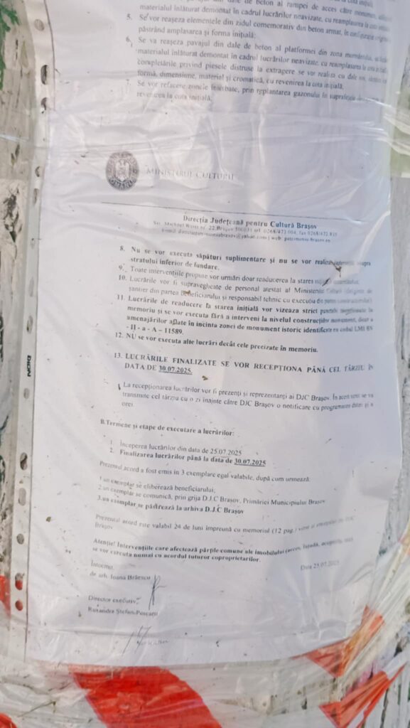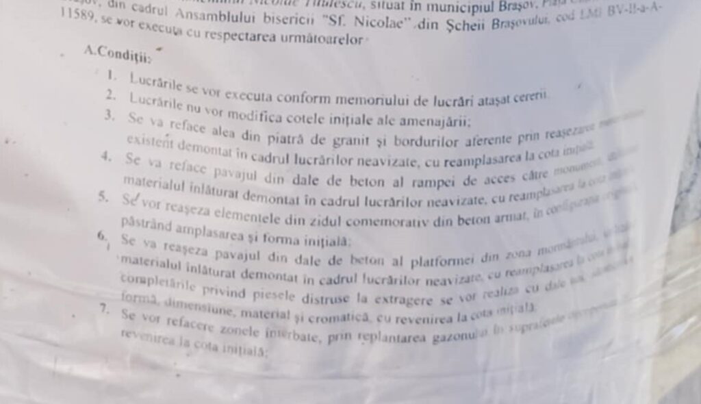 Mă regăsesc, din nou, în situația de a vă prezenta faptul că la Biserica Sf. Nicolae din Șchei au început lucrări fără a avea acordul scris al Direcției Județene pentru Cultură (DJC) Brașov. De data aceasta sunt lucrări în curtea bisericii, lucrări începute undeva prin 21-22 iulie 2025 și pentru care DJC Brașov a emis acordul scris cu numărul 113 în data de 25 iulie 2025. Este vorba de „refacere alei, pavaj, zone înierbate și zid comemorativ la monumentul istoric Nicolae Titulescu”.