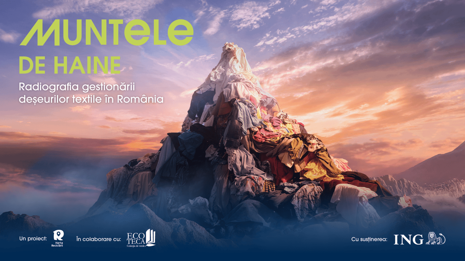 Radiografia gestionării deșeurilor textile în România face parte din campania Muntele de Haine, creată de Harta Reciclării, cu sprijinul ING România, care atrage atenția asupra volumului mare de deșeuri textile generate anual și promovează soluții simple pentru reducerea acestora, pe care oricine le poate pune în practică: reutilizare, reparare, reinventare, donare, colectare separată și obiceiuri de cumpărare responsabile.