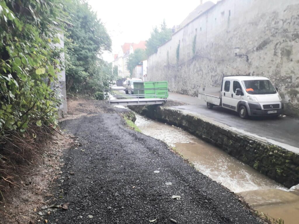Aceste lucrări aveau rolul de a repara abuzurile făcute la peretele de susține al pârâului Graft. Și parțial a fost reparat, cu păstrarea unei centuri de beton la bază.