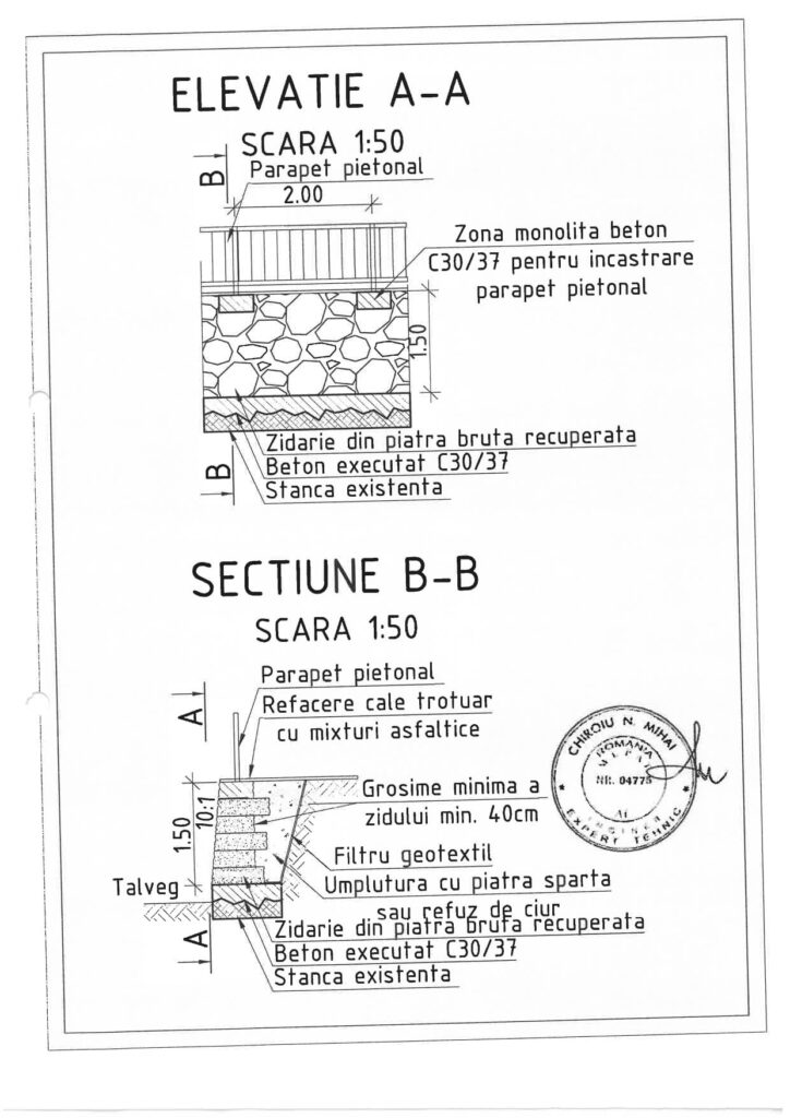 Iată o planșă inclusă în expertiză ca să vedeți cum ar trebui să fie făcut perete de susținere la pârâul Graft.
