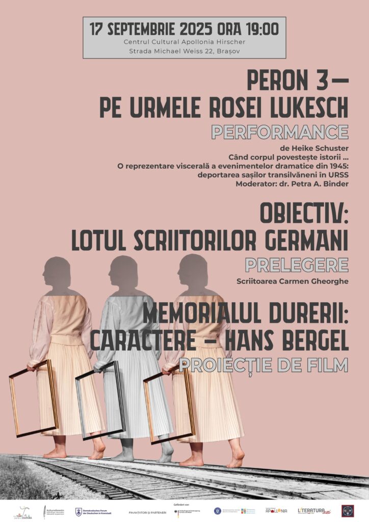 Asociația Cu timp pentru cultură împreună cu Forumul Democrat al Germanilor din Brașov, Biroul Cultural pentru Transilvania la Muzeul Transilvănean din Gundelsheim, Germania și Banca de Cultură Apollonia Hirscher vă invită la o reprezentare viscerală a evenimentelor dramatice din 1945: deportarea sașilor transilvăneni în URSS