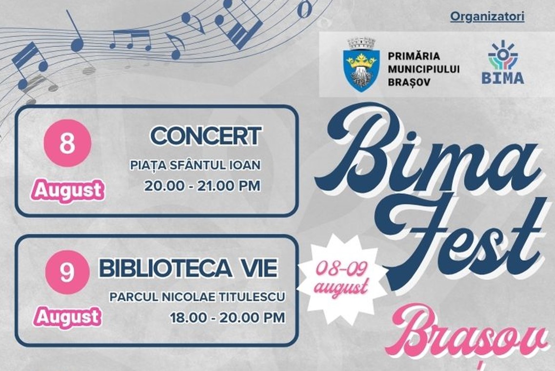 Brașovul se pregătește să găzduiască prima ediție a BIMA FEST, un festival dedicat forței interioare și puterii comunității, parte a proiectului Planul B, o inițiativă lansată la Brașov Heroes în 2025. Între 8 și 9 august 2025, BIMA FEST invită publicul la două evenimente speciale organizate în inima orașului, care vor inspira și vor aduce bucuria unei vieți pline de sens, chiar și atunci când apar schimbări neașteptate. Festivalul este organizat de echipa BIMA (Bunătate, Incluziune, Mobilitate și Accesibilitate) și Primăria Municipiului Brașov. Acest proiect a fost finanțat cu fondurile strânse la Brașov Heroes, cu sprijinul Fundației Comunitare Brașov.