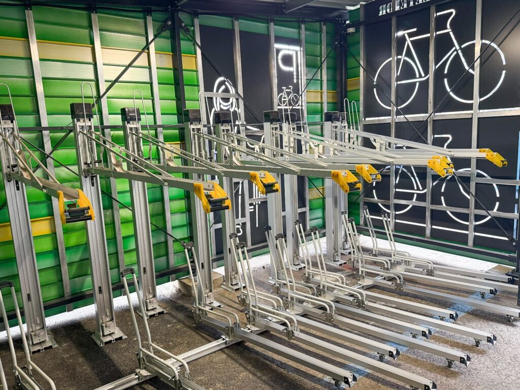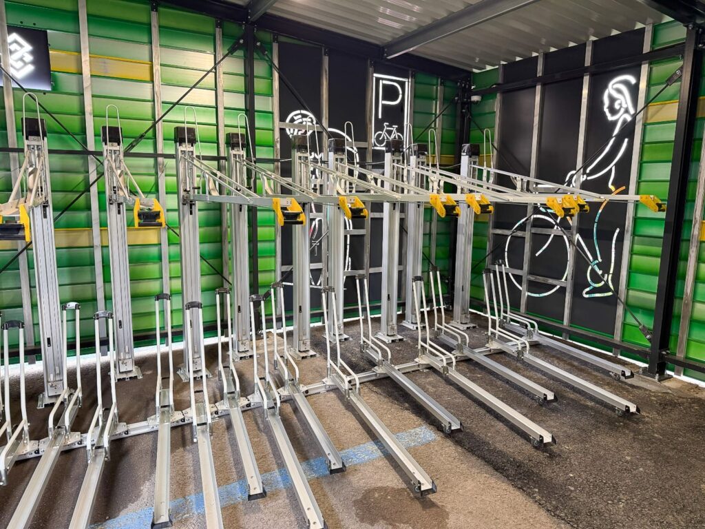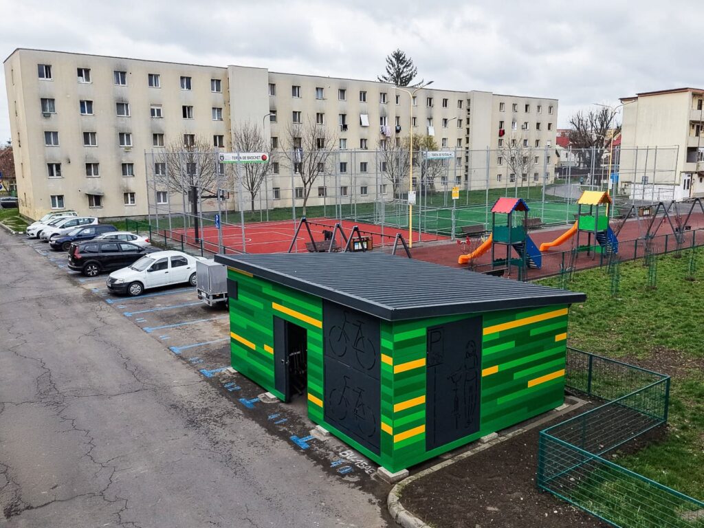 Parcările pentru biciclete sunt amenajate sub forma unor containere de depozitare securizate, cu o înălțime de 2,5 m și o capacitate de 50 de biciclete, în cazul celor de pe str. Soarelui și de la Făget, sau de 25 de biciclete, în cazul celei din Noua. Accesul în parcare se va face printr-un sistem securizat, cu yală electromagnetică și cititor de card. De asemenea, va fi dotată cu camere de supraveghere video.