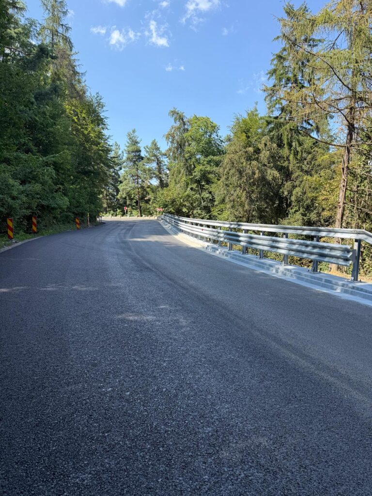 Ulterior s-a montat o rigolă de acostament, a fost reconstruit sistemul rutier, montat parapetul de siguranță și trasate premarcajele rutiere.