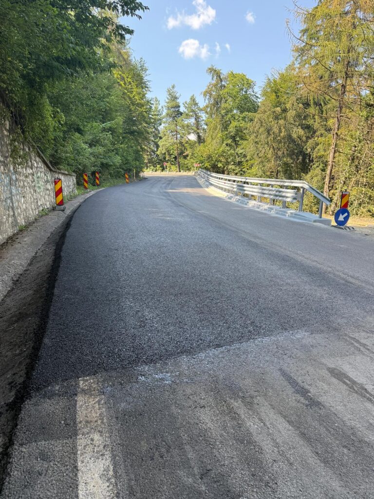 La sfârșitul săptămânii trecute s-au finalizat lucrările de consolidarea a drumului spre Poiana Brașov, la Km 6+000, și s-a reluat circulația pe ambele sensuri, după ce în luna aprilie au început aceste lucrări de consolidare.