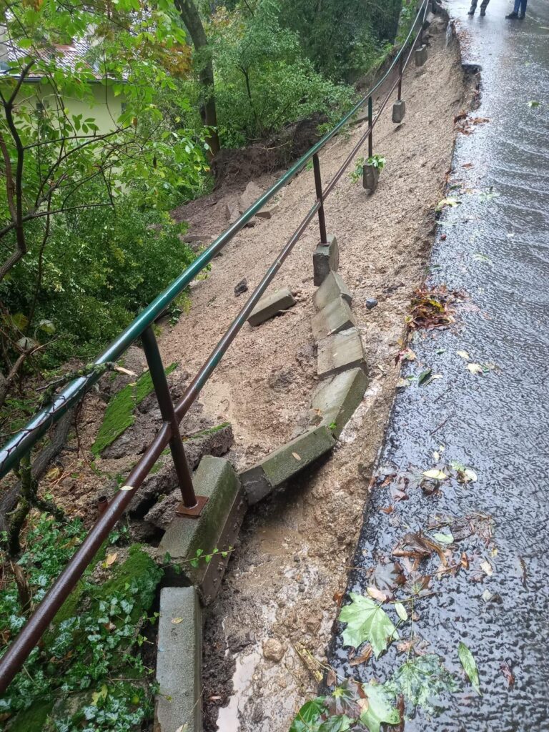 Vă reamintim că în luna octombrie, pe str. Cibinului în dreptul imobilelor situate între numerele 35-38, s-a produs o alunecare de teren care a dus atât la o surpare de taluz a drumului public pe о lungime de aprox. 40 m, mai mulți arbori au fost doborâți, iar o parte a balustradei de protecție şi bordurile s-au prăbușit. În vederea îndepărtării pericolului iminent, a fost restricționat accesul autovehiculelor. Pentru dirijarea apei pluviale au fost folosiți saci cu nisip, iar arborii care au fost dezrădăcinați au fost îndepărtați.