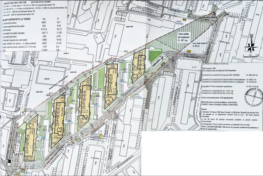 – 24.05.2022 – Comisia de circulațiedin cadrul primăriei a avizat favorabil proiectul cu blocuri de parter + 10 etaje (2S + P + 9E + etaj tehnic), proiect ce includea și o suprafață de 1.871 m.p. pentru construire unitate de învățământ;