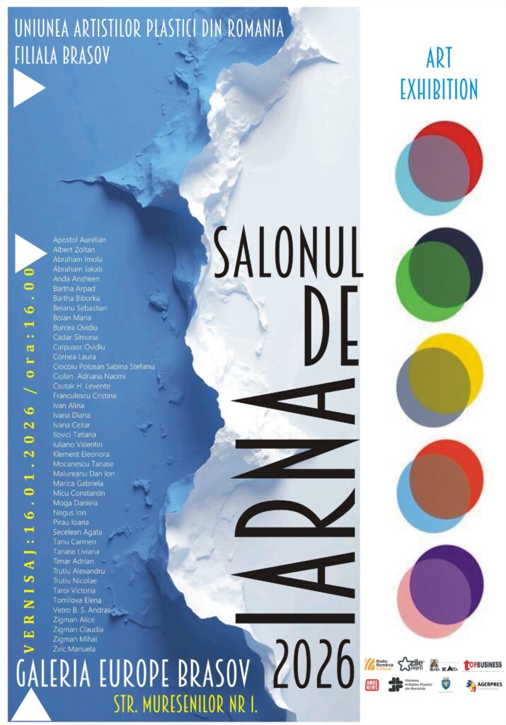 UAP Brașov deschide 2026 cu o nouă expoziție de grup, Salonul de Iarnă. Vernisajul are loc în data de 16 ianuarie 2025, ora 16:00, la Galeria Europe din strada Mureșenilor. Expoziția poate fi vizitată pâmă la finalul lunii ianuarie.