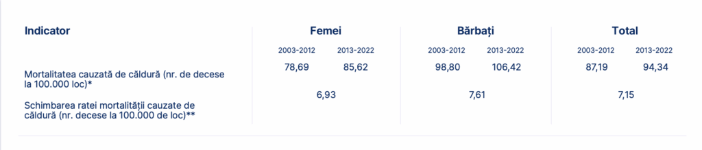 1. Mortalitatea cauzată de căldură în România a crescut cu circa 8% în perioada 2013-2022 comparativ cu perioada 2003-2012.