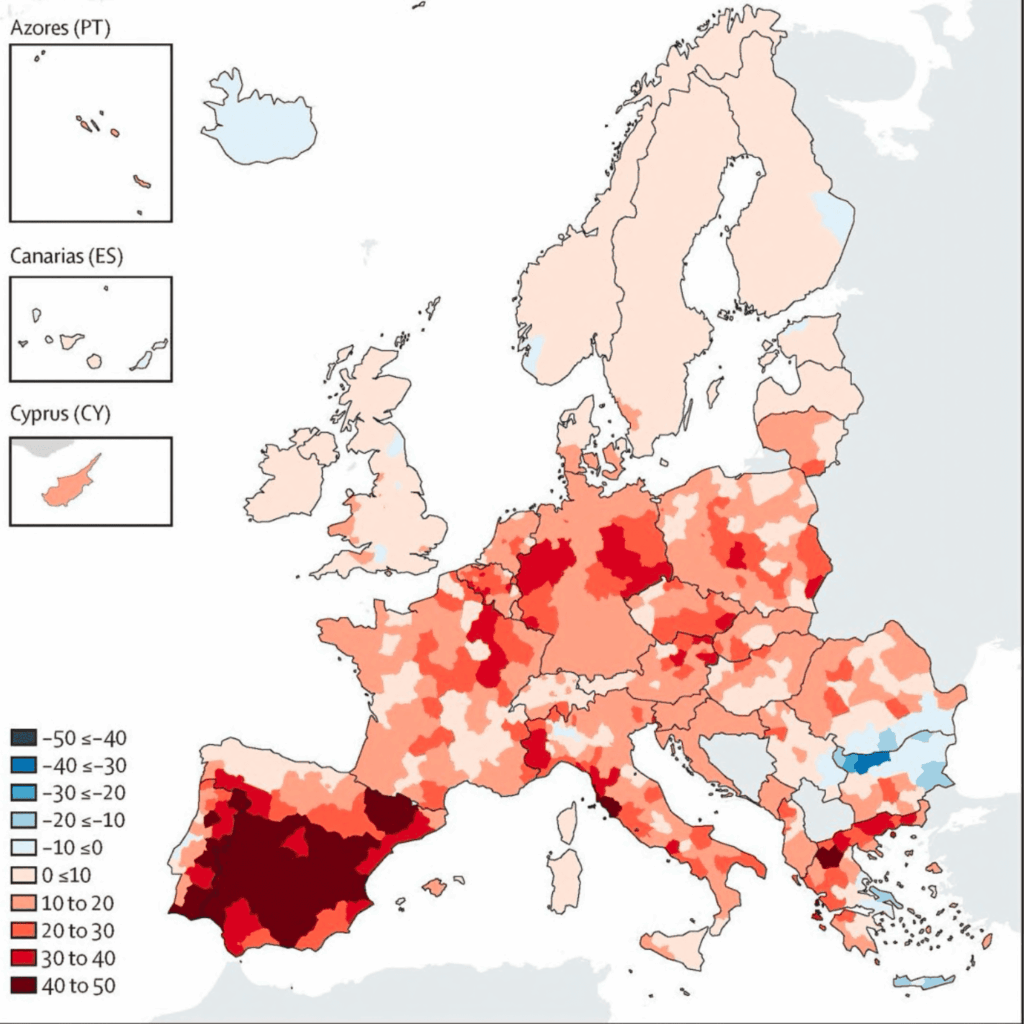 - Mortalitatea asociată căldurii a crescut, la nivel european, cu aproximativ 30% în ultimii 20 ani.