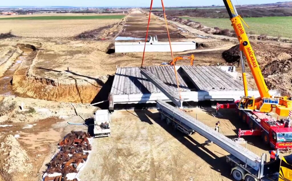 Se lucrează intens la terasamente, poduri, coloane de beton în zonele mlăștinoase, taluzări sau montarea grinzilor. În același timp, continuă armarea și betonarea plăcilor la poduri. Peste 1 milion de metri cubi de umplutură au fost deja realizați – mai mult de jumătate din total, iar grinzile au fost deja montate pe primele 8 structuri, urmând în aprilie să fie montate pe următoarele 6. Avem deja primul strat de asfalt pe circa 2,5km.