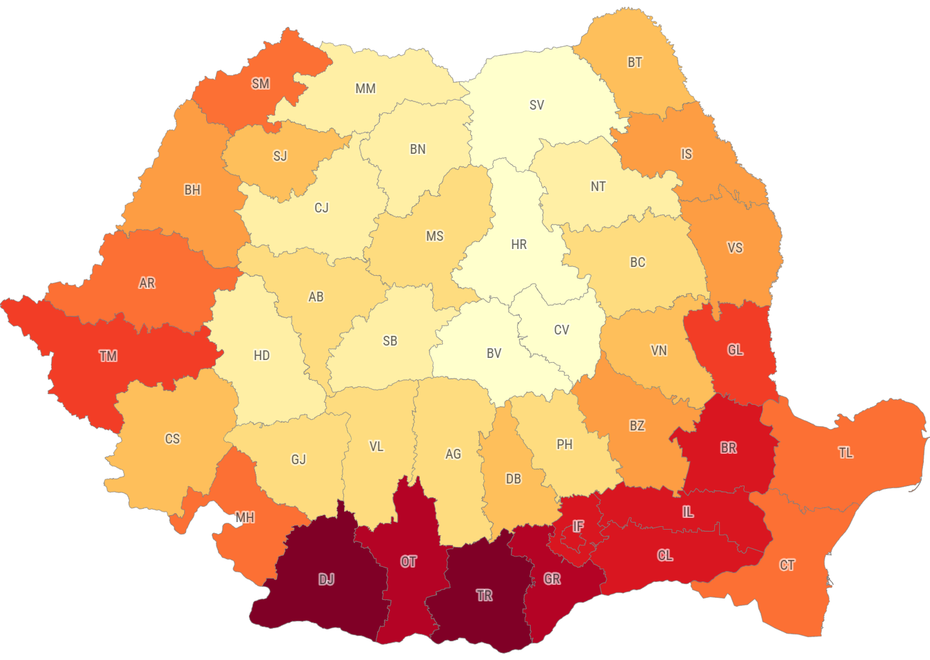 - Diferențele față de media națională evidențiază “puncte fierbinți” unde populația este expusă constant unui stres termic peste medie.