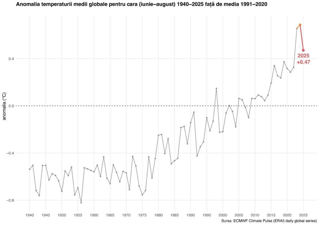 Datele ne arată nu doar o tendință pe termen lung de încălzire a verilor la nivel global, ci și faptul că verile recente, inclusiv 2024 și 2025, se află la extremele seriei. Aceasta confirmă accelerarea încălzirii climatice și frecvența tot mai mare a verilor record.