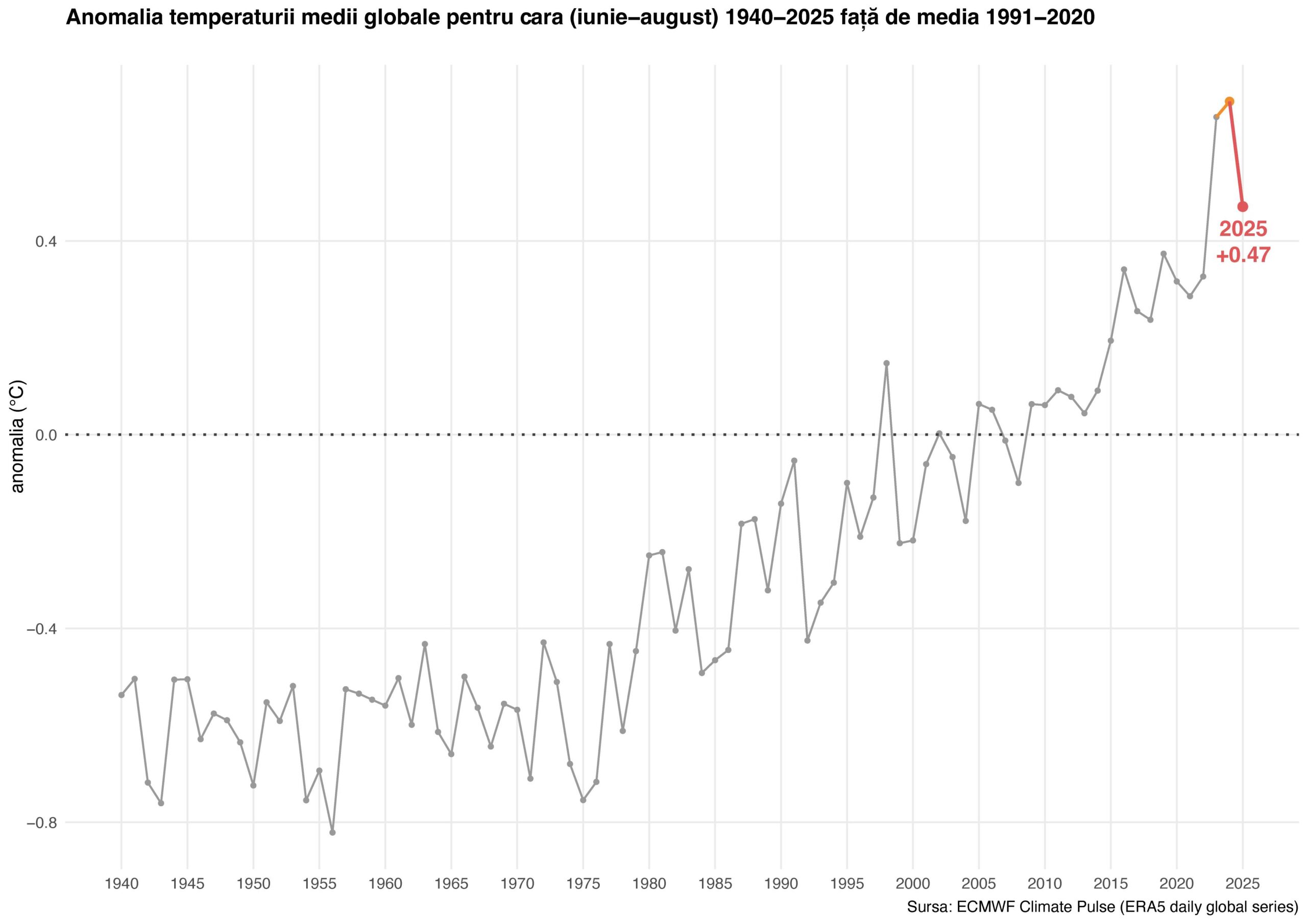 Datele ne arată nu doar o tendință pe termen lung de încălzire a verilor la nivel global, ci și faptul că verile recente, inclusiv 2024 și 2025, se află la extremele seriei. Aceasta confirmă accelerarea încălzirii climatice și frecvența tot mai mare a verilor record.